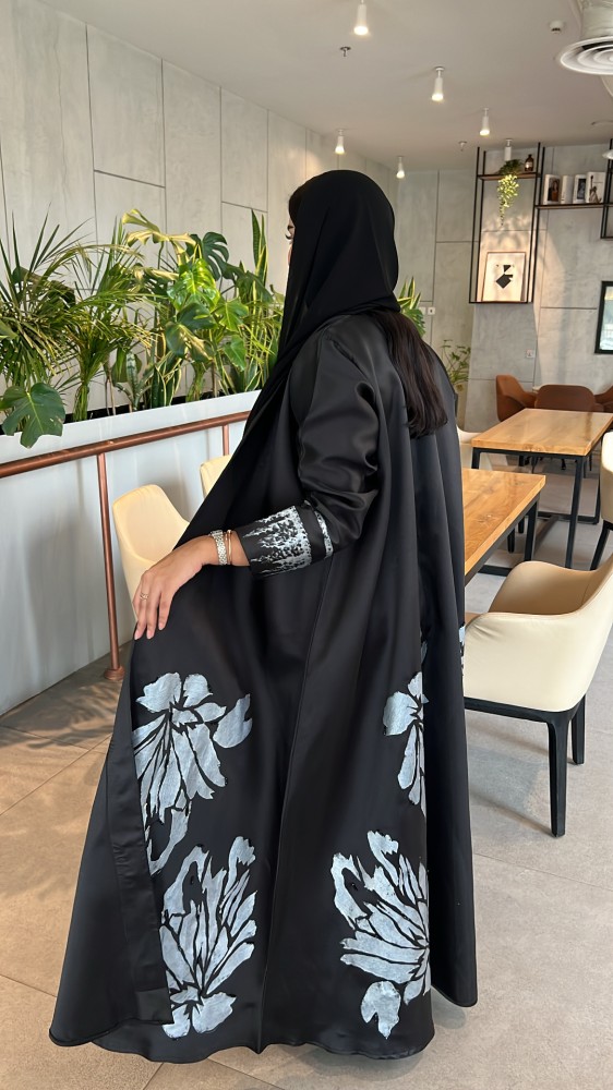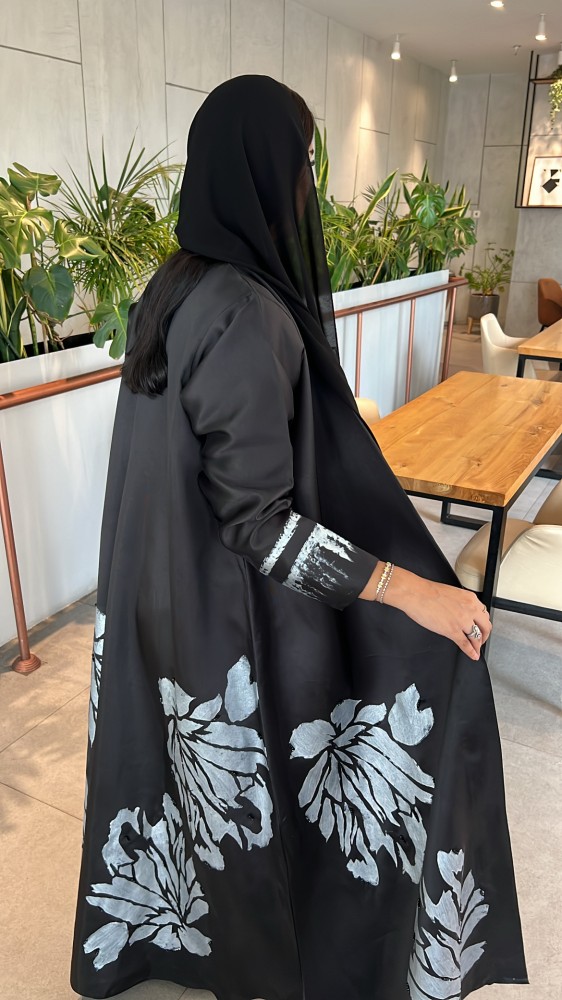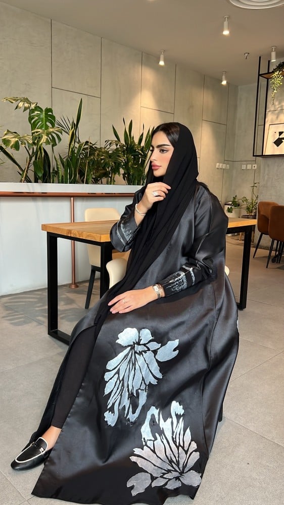 القماش : كريب واقف ربع لمعه مع رسم يدوي