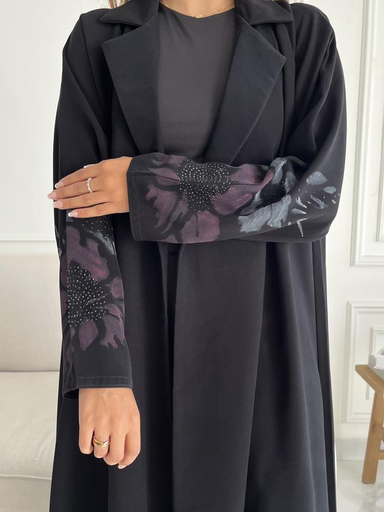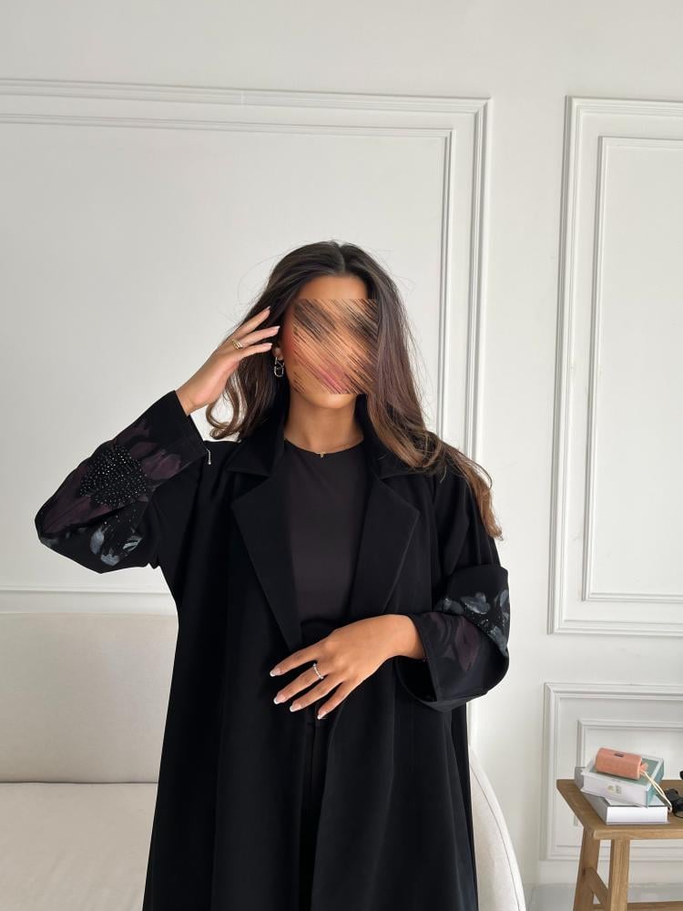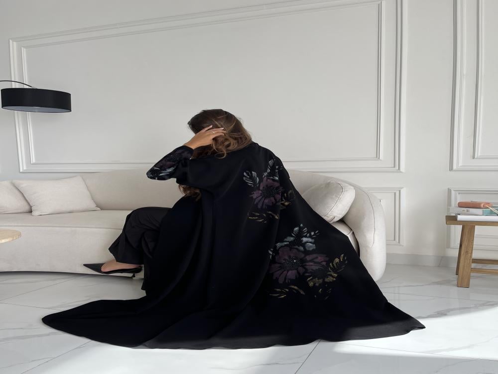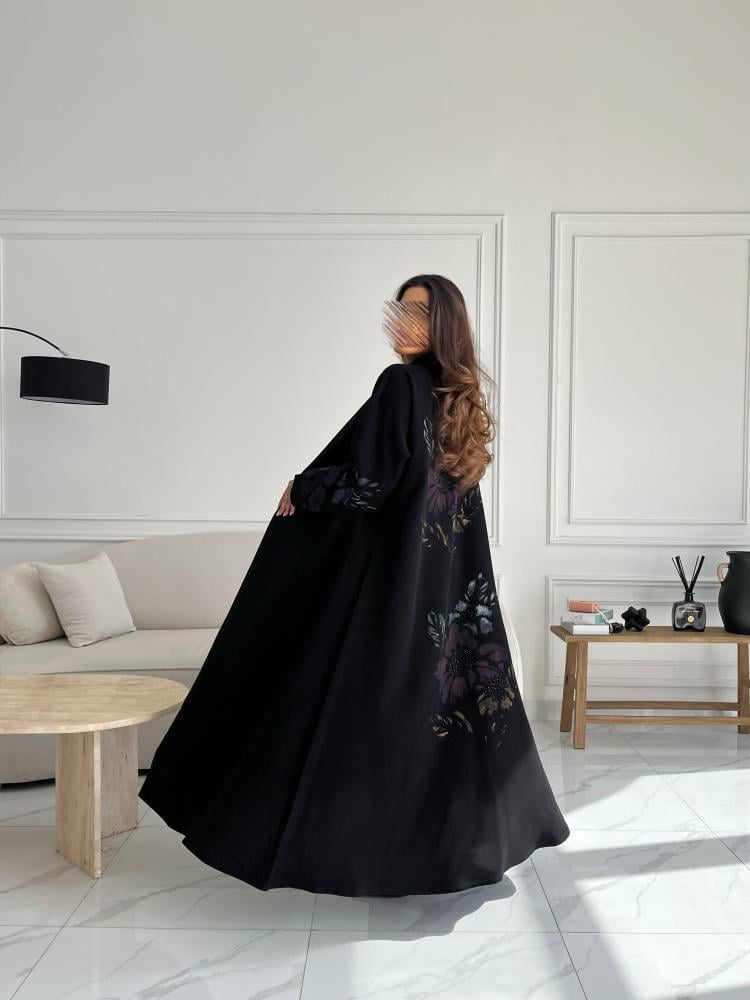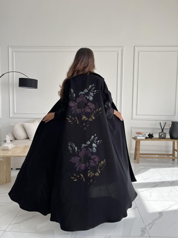 القماش : كريب اسود مع رسم يدوي وخرز