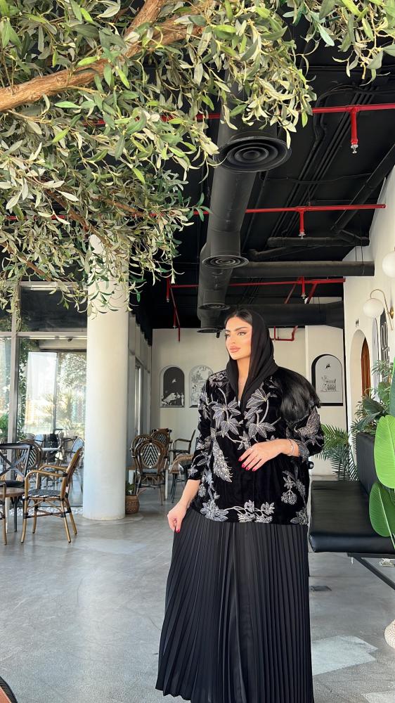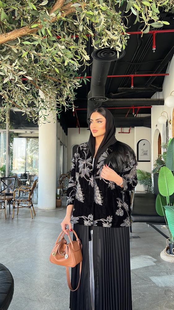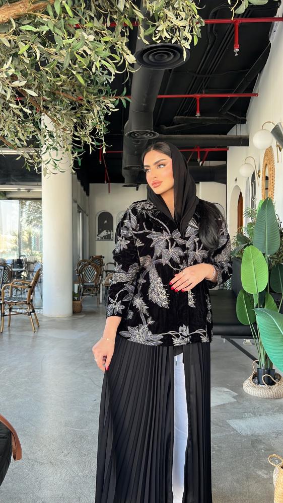 القماش : جاكت مخملي مطرز مع كسرات صيفي