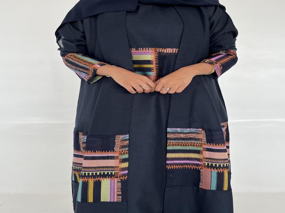 القماش : لينن هندي قطعتين مع كلفة تطريز